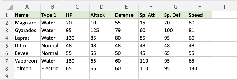Notice that Gyarados' Defense and Special Defense, which are 79 and 100, are hightlighted.